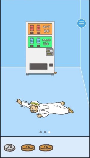 右に移動し、自動販売機に100円玉を使用する。