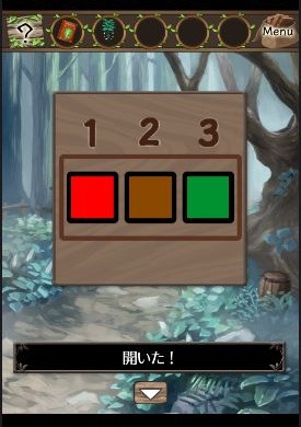 木の幹で確認した数字に該当する色「赤→茶→緑」を確認。