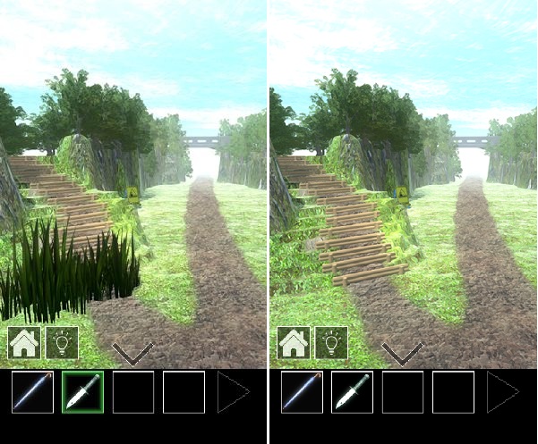 奥に進んで草をナイフで刈り取る。