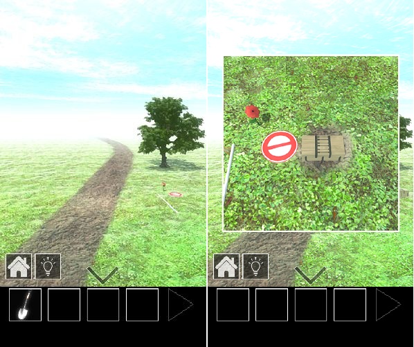 倒れている看板を拡大してシャベルを使用する。