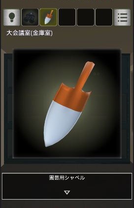 右奥の金庫を拡大し、右下にある「園芸用シャベル」を入手。