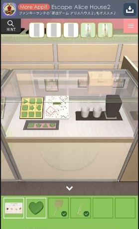 ショーケースの上の箱を開けて「三角形のお菓子」を入手。
