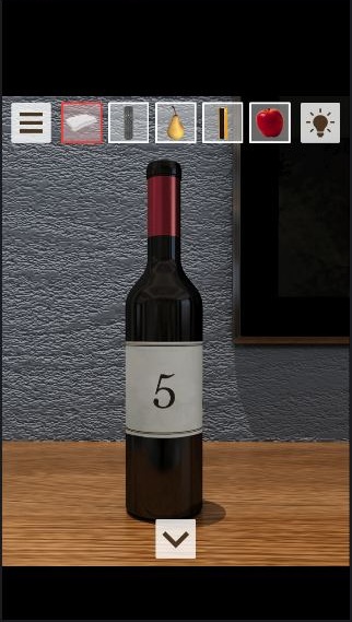 最初の部屋の白い棚にあるボトルを拡大して「黄→6」を確認。