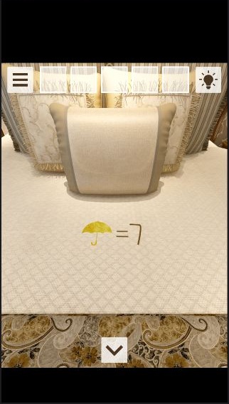 寝室のベッドを拡大して「傘→7」を確認。