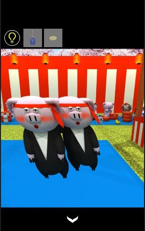 右奥にいるブタを拡大し、紙飛行機を使用する。
